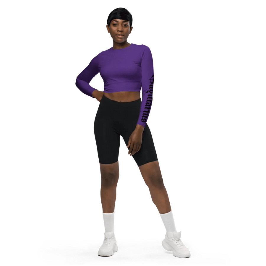 Elevate your style with our eco-friendly all-over print crop top. Made from recycled materials, this long sleeve top offers a body-hugging fit and UPF 50+. Versatile and sustainable fashion for the modern trendsetter. Shop now on sameehkins' official website.